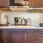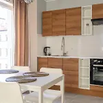 This accommodation provides coffee and tea making equipment and a kitchenette with a fridge, an oven, and kitchenware. The apartment is approximately a 5-minute walk from the nearest bus stop Plac Staszica.
